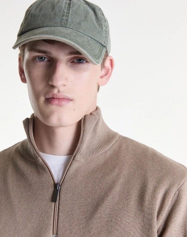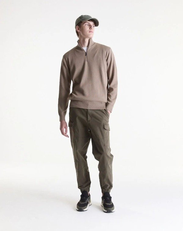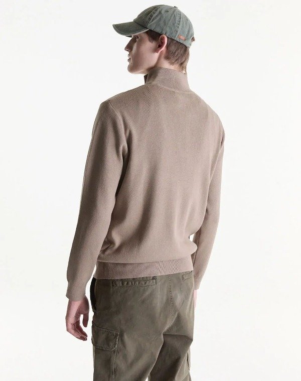 Sweater básico de cuello alto con cierre. Tejido de peso medio y tacto suave.