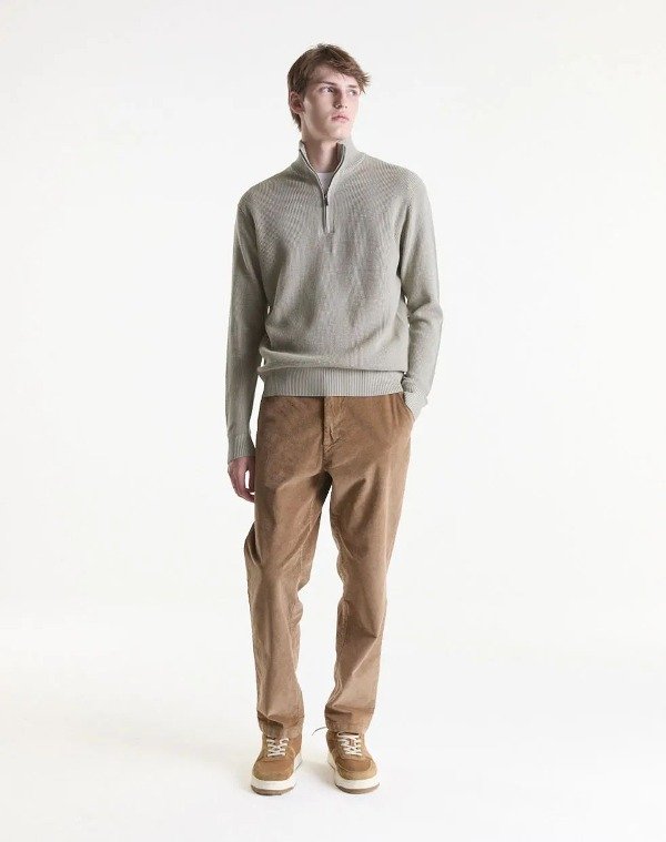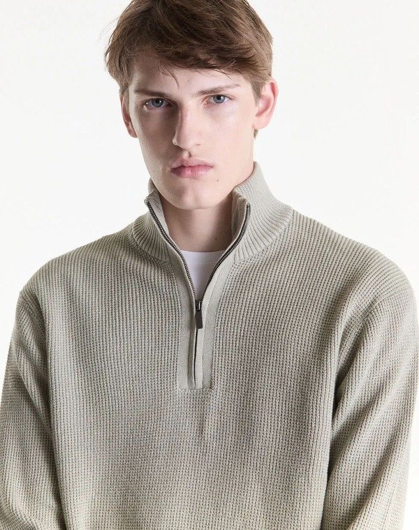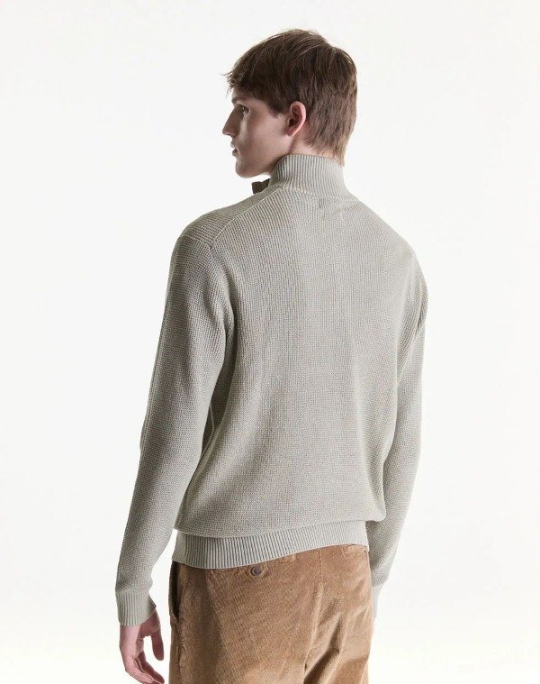 Sweater de cuello alto con cierre, en tejido jacquard fantasía .Tejido de peso medio y de tacto suave.