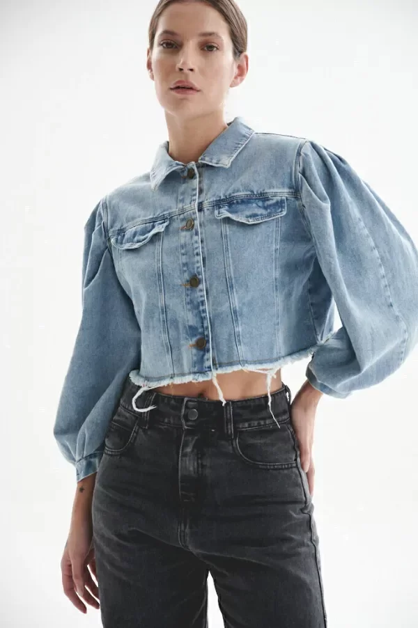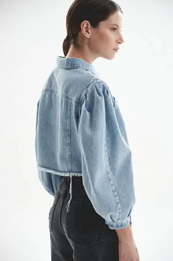 Chaqueta de jean camisero lavado a lavado stone y deflecado y botones de niquel.
